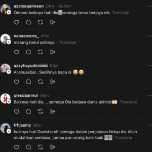 Menjengah ke ruangan komen, rata-rata warganet juga memuji dengan tindakan yang dilakukan oleh gadis berusia 18 tahun itu yang disifatkan sangat matang dalam menangani ujian. Terdahulu, hantaran terbaharu yang dikongsikan oleh Maria Danisha di TikTok telah menyorot perhatian ramai. Meskipun tidak dinyatakan dengan terperinci, namun coretan yang ditulis seolah-olah menggambarkan keadaan dirinya ketika ini.