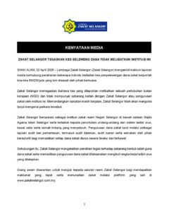 Orang awam disarankan untuk merujuk saluran rasmi Zakat Selangor untuk maklumat yang tepat dan menunaikan zakat melalui platform yang sah di laman web www.zakatselangor.com.my. Sehingga kini, memandangkan siasatan pihak berkuasa masih dijalankan terhadap NGO berkenaan, Zakat Selangor memilih untuk tidak mengulas lanjut mengenai butiran kes tersebut.