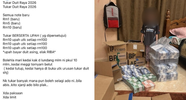 SEORANG individu meluahkan rasa kecewa selepas mendakwa gagal menukar duit raya di beberapa bank sebelum menemui iklan di media sosial daripada orang perseorangan yang menawarkan perkhidmatan tukar duit raya. Dia mendakwa alasan yang diberikan pihak bank kepadanya adalah servis pertukaran wang sempena Aidilfitri tidak disediakan. “Aku macam pelik, biar betul bank tak boleh tukar duit raya.… Continue reading Siap dapat berkotak kotak, individu luah rasa kecewa bila tular di laman sosial ada yang buat perniagaan tukar duit raya